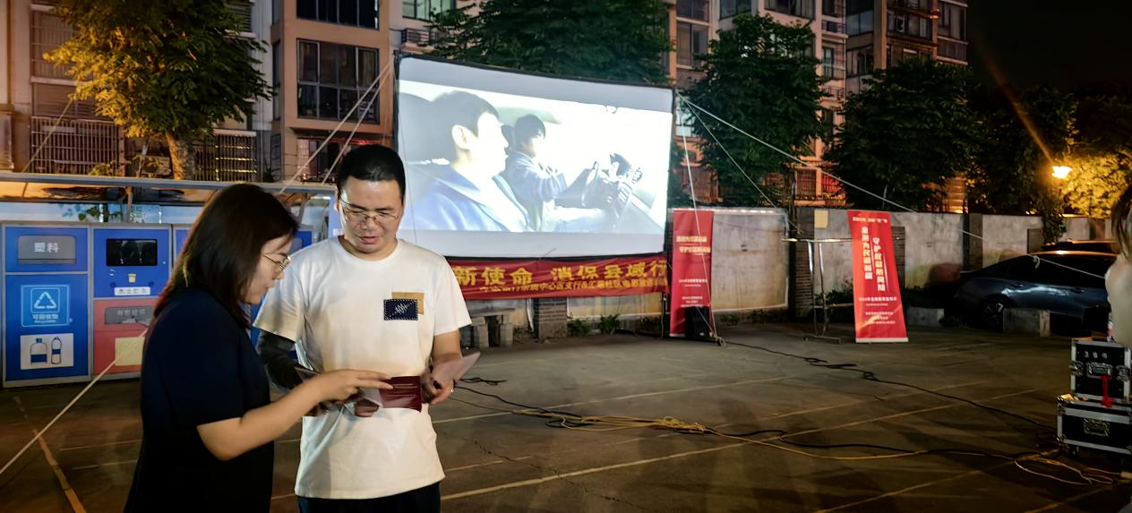 隨著夜幕降臨,電影正式拉開帷幕,現(xiàn)場觀眾座無虛席、聚精會神,層層疊進的劇情引得居民們開懷大笑,也在潛移默化中普及了金融反詐、安全出行等知識?!拔覀兡贻p的時候就是這樣圍在一起看電影的,這樣的活動可以多搞搞,很有氛圍,也學到了知識”,電影結(jié)束,居民們意猶未盡地說到。